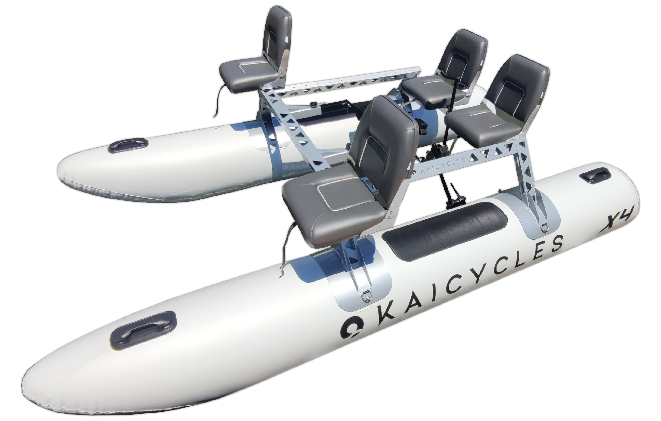 The ZEN model from Kaicycles is a true treat for sea lovers with which this elegant nautical device also called Pedal Boat, Pedalo or Pedal Boat satisfies your desire to sail and exercise in a comfortable way. You can equip its large platform for any of the activities you want to do. With the great stability of its double hull and its high hydrodynamics, it will make you enjoy it to the fullest and in complete safety.